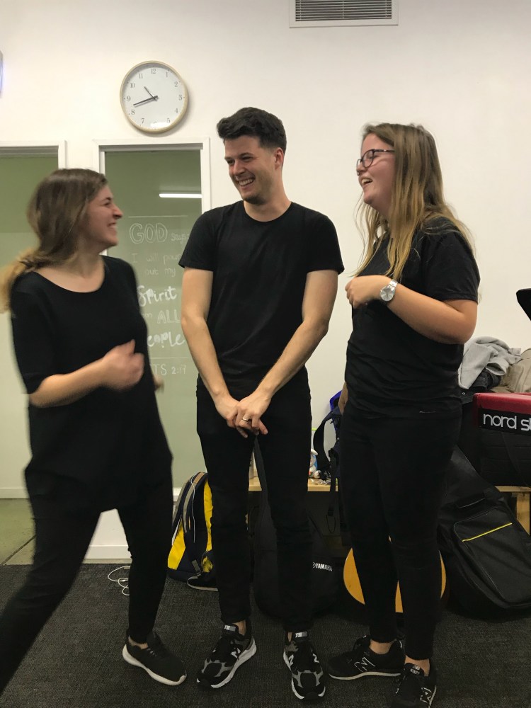 Also wanted to share this funny picture of me (Abi) with my co staff for the School of Worship. Eva (right) and I planned to match Alex (middle) today, which he’s not a big fan of. But it made for a very laughable and fun moment!
